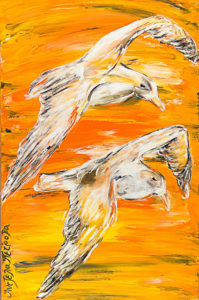¨Couple of gulls in Orange” Expressionism on canvas 70×100. Art Value 650 euro. ©Angeliki Petrova.