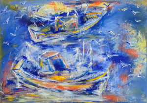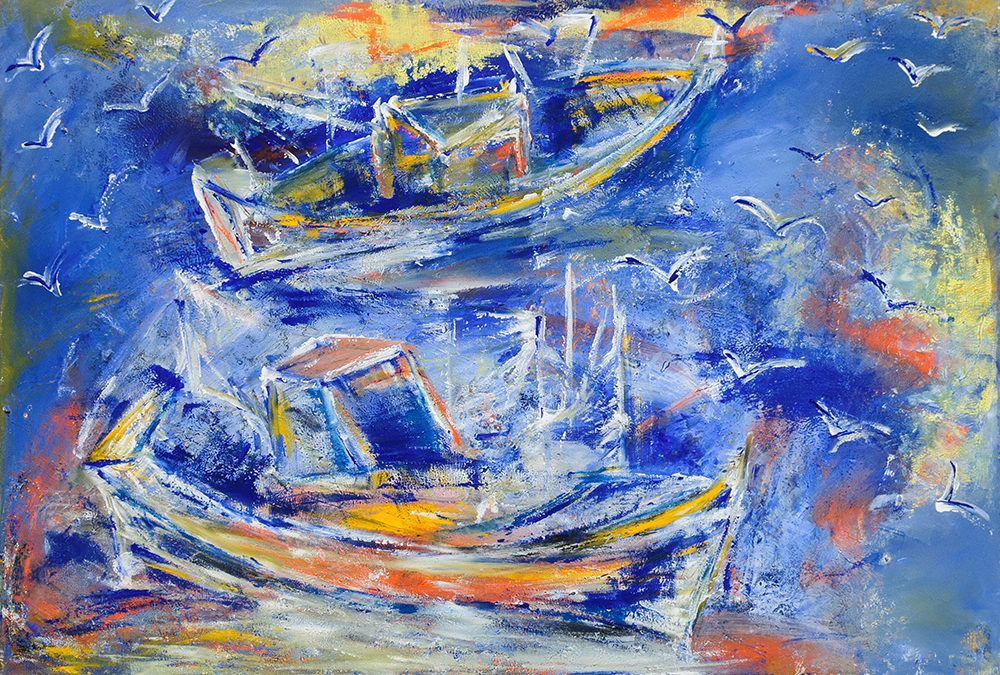 «Couple of Boats »Material: Hagiography PowdersDimensions: 60 Χ 90 on canvas ©2017 Angeliki Petrova
