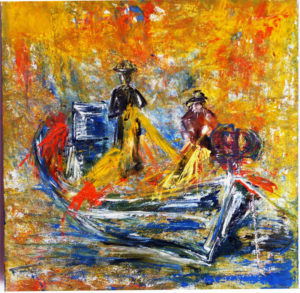 «Μαζεύοντας τα δίχτυα» Εξπρεσιονισμός. Αγιογραφίας χειροποίητα χρώματα, 40x50 σε καμβά. Αξια έργου 650 euro.©2017 Αγγελική Πέτροβα.
